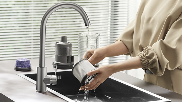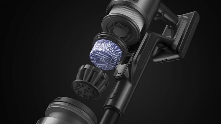 HEPA фильтр аккумуляторного пылесоса Dreame Z40 Station можно мыть под проточной водой, что позволяет продлить срок эксплуатации и улучшить процесс последующих уборок.