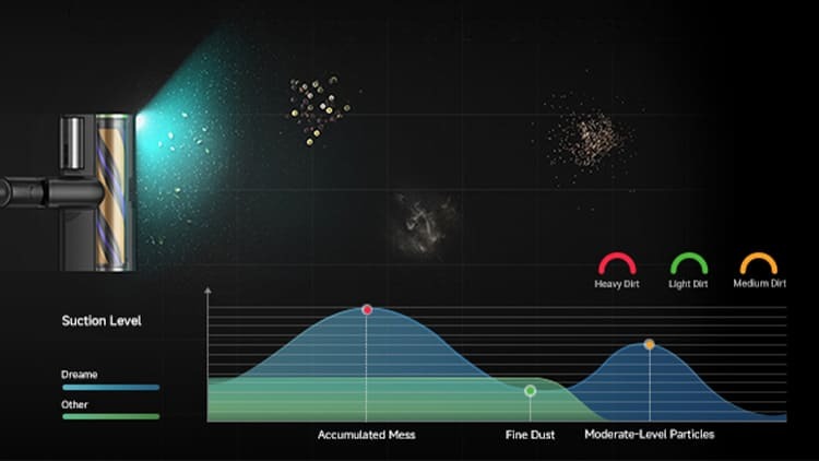 Dreame Z40 Station обеспечивает непревзойденную мощность всасывания, гарантируя превосходную глубокую уборку благодаря эксклюзивному TurboMotor и оптимизированной системе впуска воздуха, которая снижает потери всасывания.