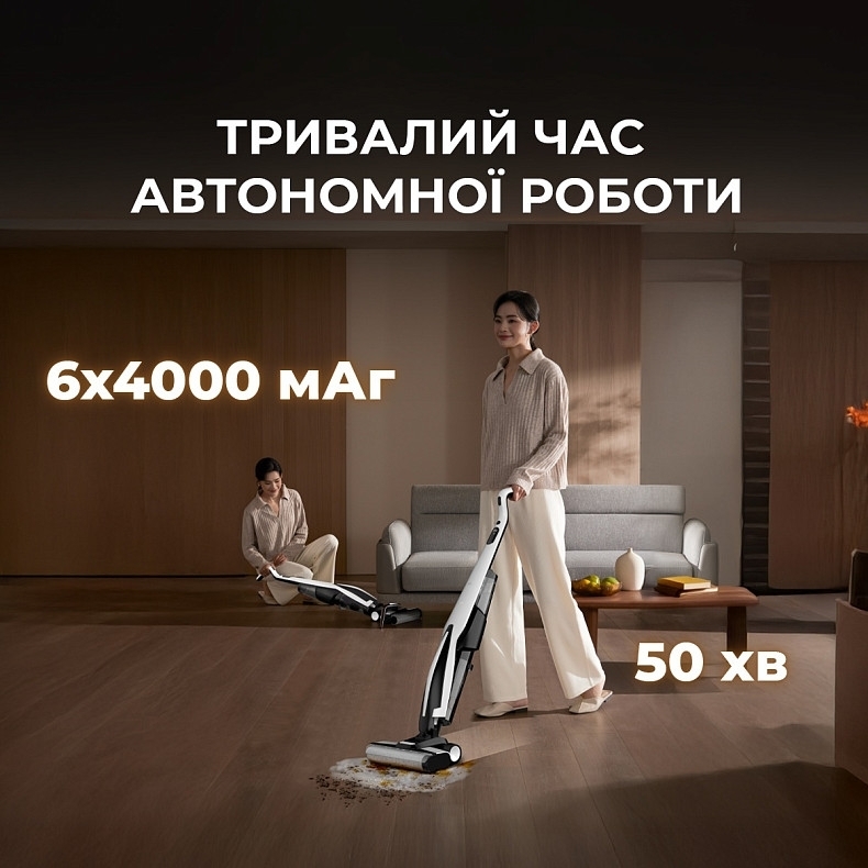 Да, вы действительно можете завершить уборку за один сеанс. Благодаря увеличенному аккумулятору с шестью ячейками по 4000 мАч, VX100 может работать до 50 минут без подзарядки. Этого хватает для уборки квартиры или всего дома. Зарядная база автоматически выключает подачу тока после полного заряда, поэтому можно оставлять устройство на подставке без опасений. Для сравнения, обычные модели с аналогичной мощностью работают 30–35 минут – здесь автономность увеличена без ущерба для тяги.
