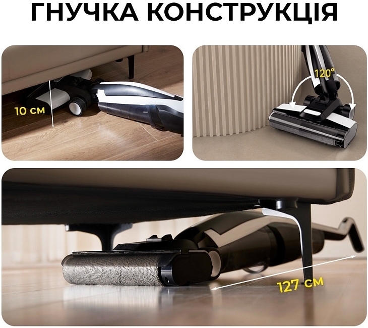 Мойщик легко поворачивается на 180°, наклоняется и скользит под мебелью, не заставляет вас менять позу или переставлять стулья. Почувствуйте мобильность в узком пространстве – под кроватью, у ножек дивана или между шкафами. Гибкий шарнир позволяет плавно изменять угол наклона без потери мощности, а сбалансированный центр тяжести делает движения точными и легкими. Под конец уборки часто чувствуется усталость в руках, однако с Deerma все иначе. VX100 ощущается как продление руки – он реагирует на каждое ваше движение и не сопротивляется. Если обычный пылесос заставляет вас подстраиваться, то здесь все наоборот – техника чувствует ваш темп.