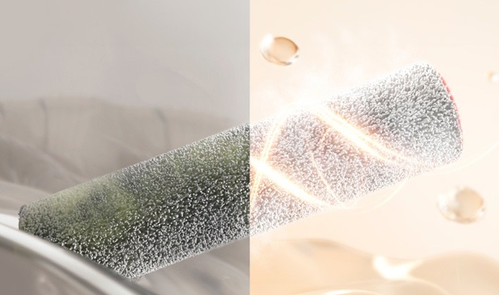 Следующий этап — сушка горячим воздухом в течение 30 минут. Валик вращается со скоростью 5200 раз в минуту и тщательно просушивается горячим воздухом. Никаких остатков влаги. Неприятные запахи исчезнут, а развитие патогенных микробов будет остановлено.