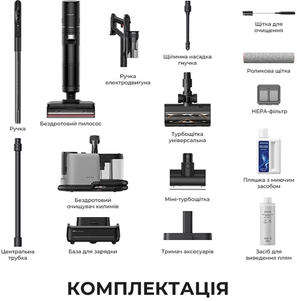 Разработанный для комплексной уборки пылесосом и мытья полов, Dreame справляется с влажной и сухой уборкой одновременно. Беспроводной пылесос с разнообразными щетками и насадками обеспечивает высокий уровень уборки. Универсальный комбинированный инструмент обеспечивает глубокую очистку и удаляет грязь из углов, щелей и других труднодоступных мест. Беспроводной пятновыводитель для ковров запросто убирает стойкие пятна из диванов и ковров за считанные секунды.