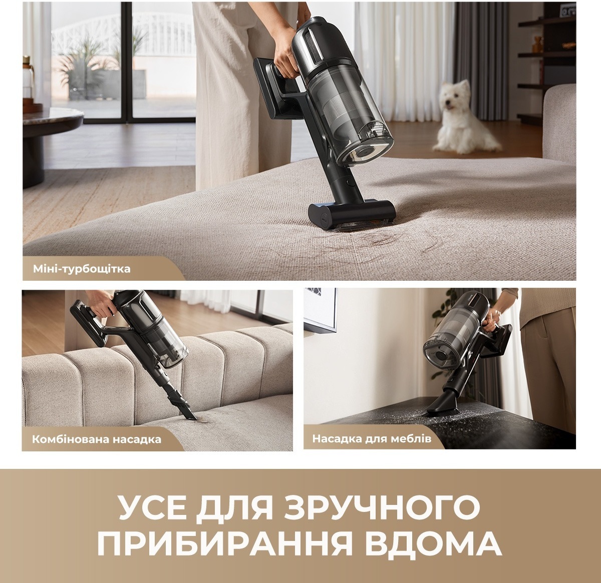 Комплектація суперська - тут є все, що тільки можна придумати! Насадки на всі випадки життя, навіть для меблів і важкодоступних місць. Дуже зручно, що можна і пилососити, і мити підлогу одразу - економія часу колосальна. Потужність висока, навіть килим чистить помітно краще, ніж мій старий провідний пилосос