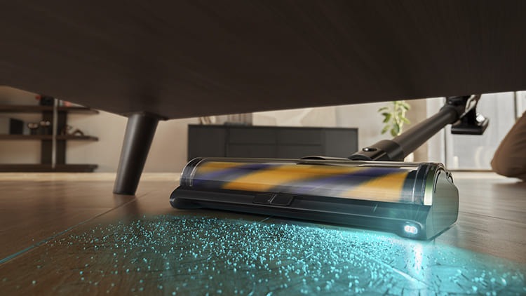 Аккумуляторный пылесос Dreame R20 Ultra AquaCycle оснащен многофункциональной щеткой с подсветкой CelesTect, которая расширяет зону действия до 140° и имеет длину 30 см для улучшенного процесса уборки пыли. Многофункциональная щетка сочетает в себе функции мягкой роликовой щетки и многофункциональной щетки для улучшения очистки.