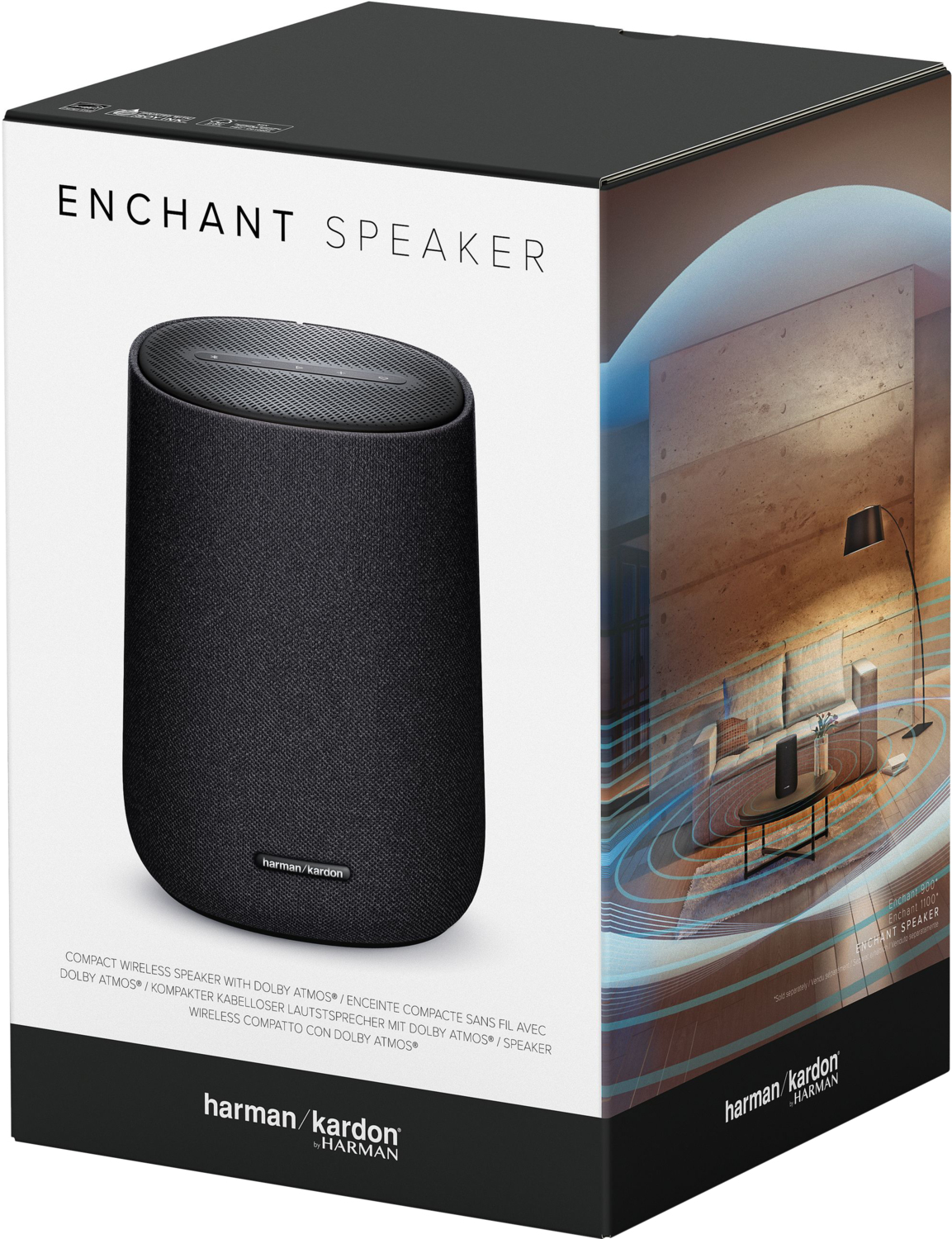 Беспроводная колонка Harman Kardon Enchant обеспечивает незабываемые впечатления благодаря Dolby Atmos. Ее закругленные стороны и направленные вверх динамики обеспечивают впечатляющие высокие частоты и звук, заполняющий помещение, при минимальных размерах.
