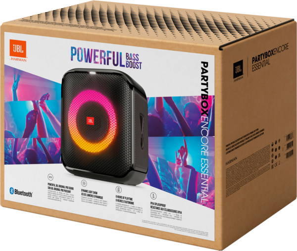 Танцуете на пляже? Вечеринка у бассейна? JBL PartyBox Encore Essential защищена от брызг по стандарту IPX4, поэтому вам не придется беспокоиться, что вечеринка станет слишком мокрой или бурной.