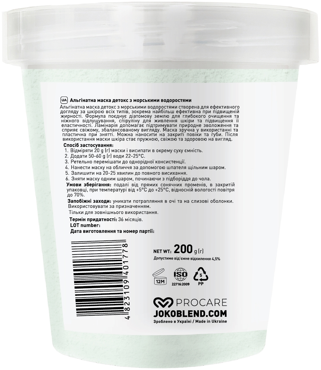 - Альгинатная маска Joko Blend Детокс с морскими водорослями 200 г