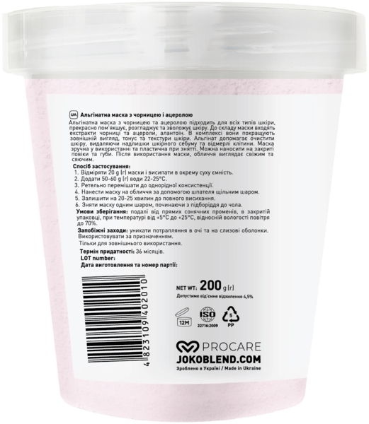 - Альгинатная маска Joko Blend с черникой и ацеролой 200 г
