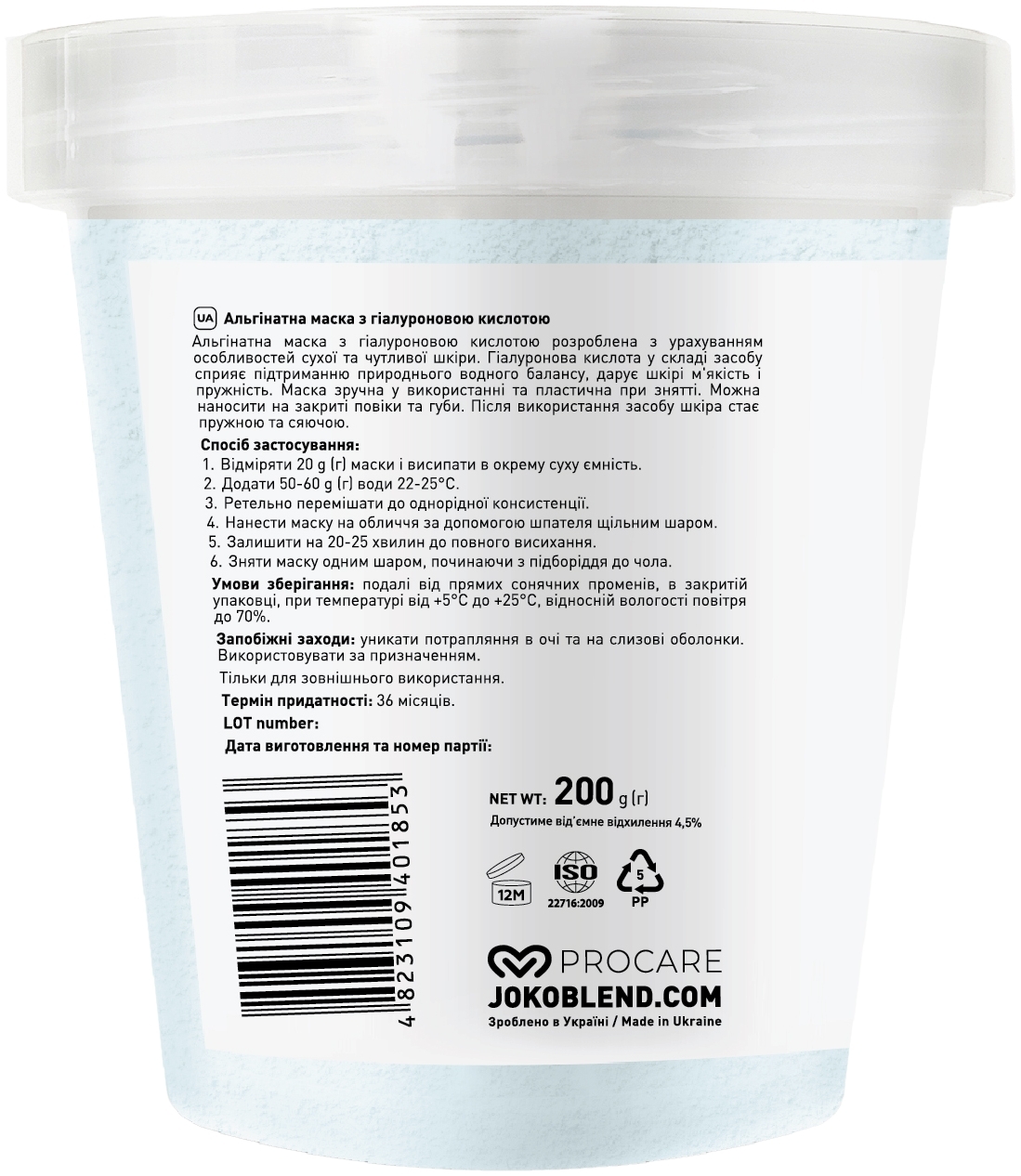 - Альгинатная маска Joko Blend с гиалуроновой кислотой 200 г