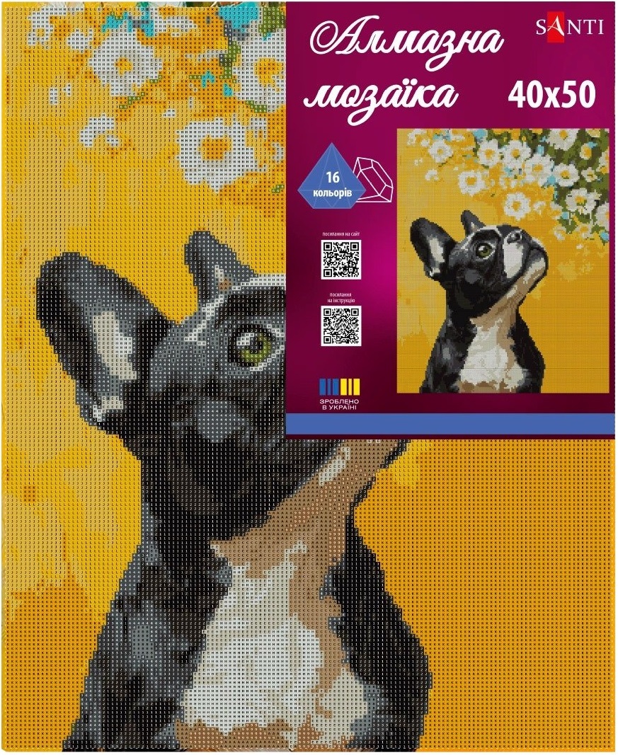 - Алмазная мозаика Santi Бульдог и цветы 40*50 см на подрамнике (956048)