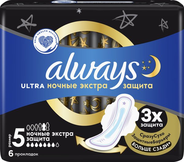 - Гигиенические прокладки Always Ultra Secure Night (Размер 5) 6 шт