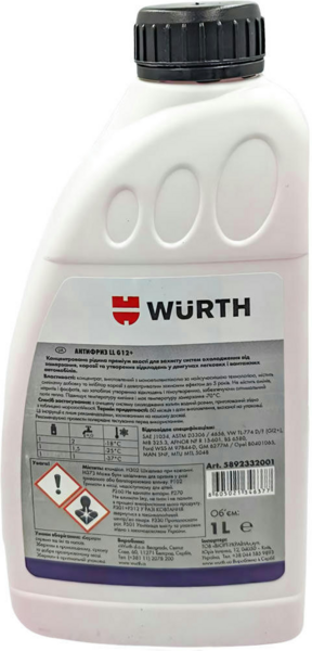 Антифриз Wurth концентрат LL G12+ 1л красный 5892332001 (8605021346377)