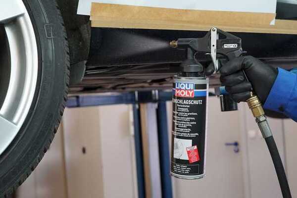 В качестве защиты от ударов камнями и коррозии на видимых деталях автомобиля, как, например, порогах, спойлерах, задних и передних фартуках, а также для шасси и деталей кузова.