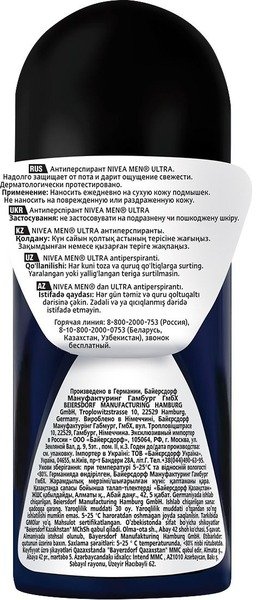 - Антиперспирант Nivea Men Ultra с активированным углем Шариковый 50мл