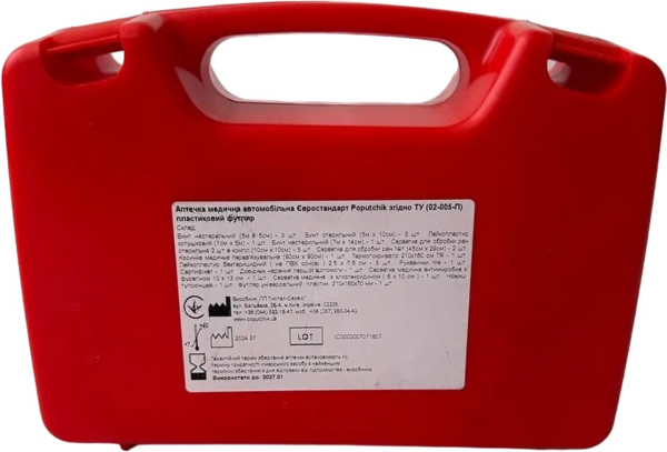 - Аптечка медицинская автомобильная Poputchik Евростандарт согласно ТУ (02-005-П)