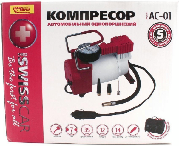 - Автокомпрессор ProSwisscar металлический 35л/мин AC-01 11010001 (П) (4824038000124)
