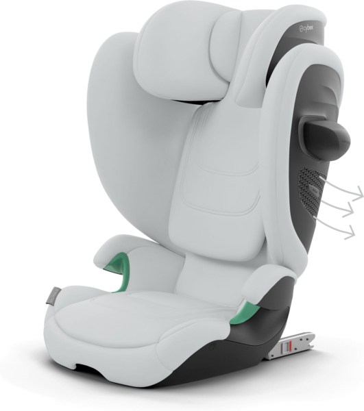 - Запатентованный откидной подголовник помогает удерживать голову ребенка в безопасной зоне автокресла.