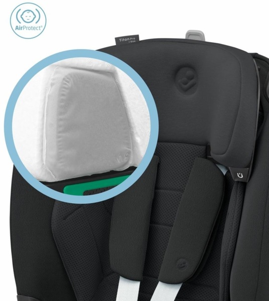 Titan Pro i-Size оснащено запатентованной системой защиты от боковых ударов AirProtect в подголовнике, что снижает риск травмирования головы до 20%.