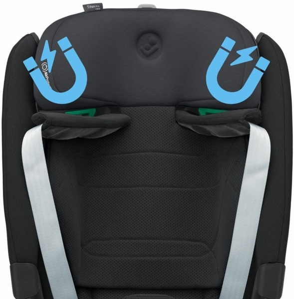 5-точечный ремень безопасности имеет магниты в плечевых накладках, которые удерживают ремень, чтобы вы могли легко посадить ребенка без лишних усилий.