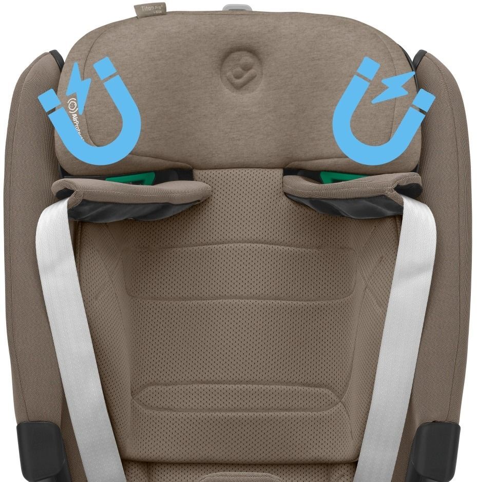 Созданное по самым высоким стандартам безопасности i-Size, оно обеспечивает защиту детей в возрасте от 15 месяцев до 12 лет. Поскольку 45% ударов приходится на боковые стороны, Titan Pro i-Size оснащено запатентованными подушками безопасности AirProtect в подголовнике, которые снижают риск травмы головы на 20% и повышают комфорт для вашего ребенка. Это автокресло группы 1-2-3 имеет улучшенную систему защиты от бокового удара G-CELL, интегрированную и встроенную технологию, разработанную для распределения силы удара от ребенка, чтобы уменьшить травмы, особенно в области головы, шеи и плеч. Максимальная защита, которая растет вместе с ребенком до 12 лет.