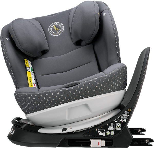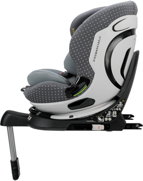 Кресло фиксируется с помощью Isofix в сочетании с опорной ножкой. Начиная с роста 100 см (и обязательно от 105 см), ножку складывают, а кресло закрепляют через Isofix вместе с трехточечным ремнем авто или только трехточечным ремнем.