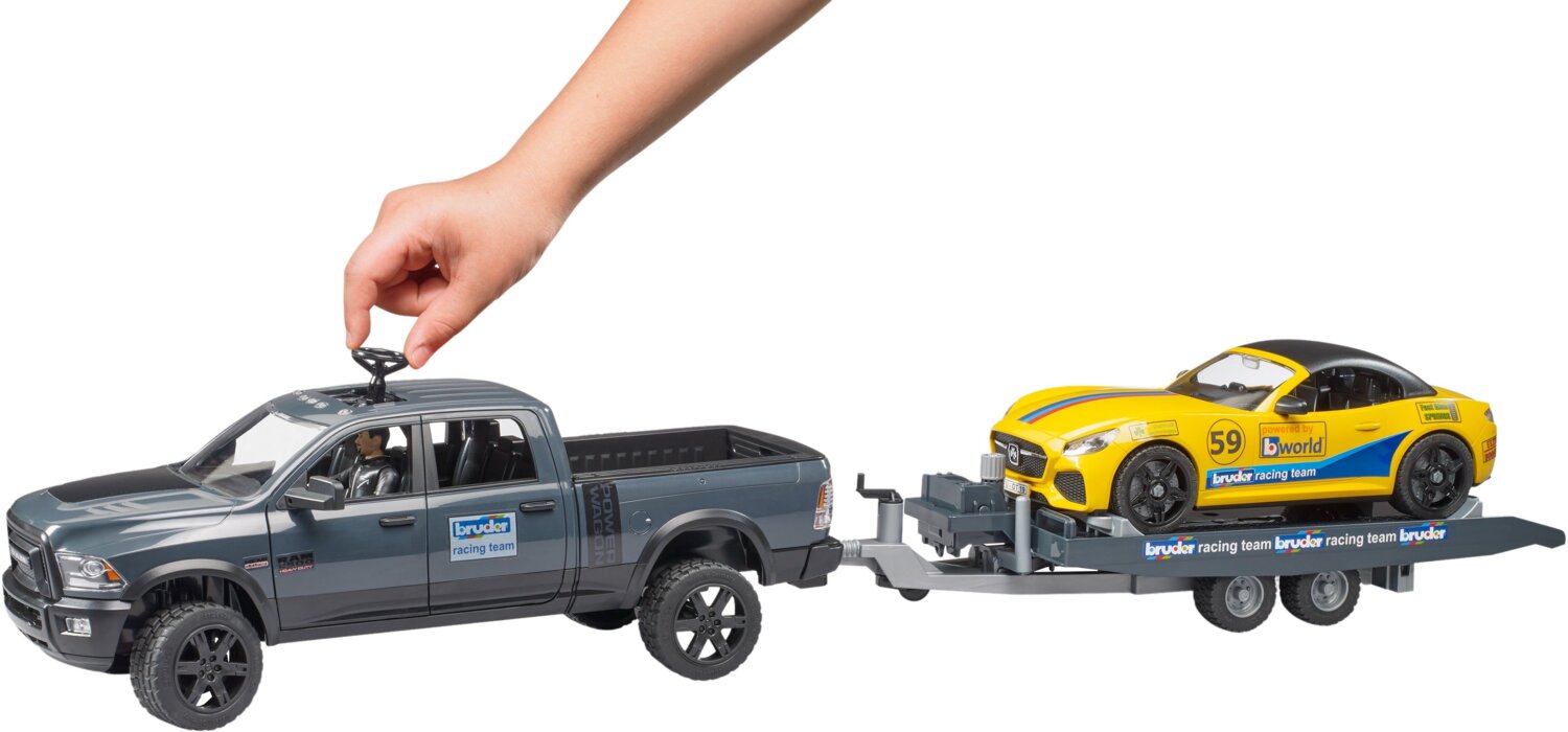 - Автомобиль Bruder RAM 2500 с прицепом-лафтетой, Roadster Bruder и фигуркой (2504)