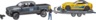 RAM 2500 с мощностью до 410 л.с. и полным приводом легко транспортирует спортивный автомобиль на трассу. Все четыре двери пикапа открываются, а удлинитель руля обеспечивает точное и простое управление моделью.