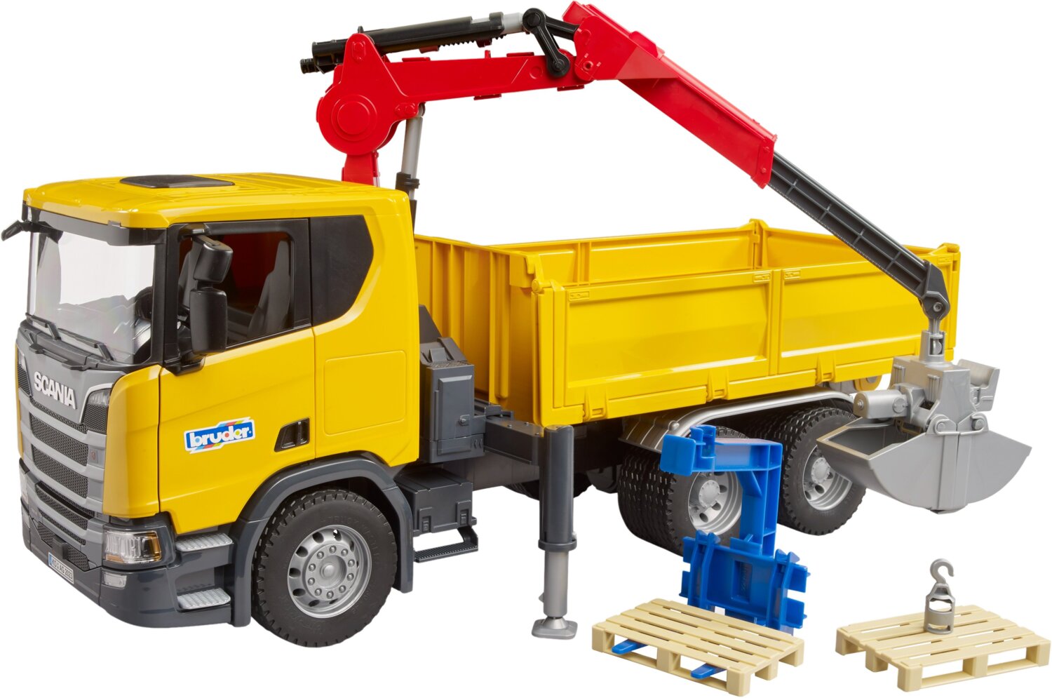 Автомобиль Bruder Scania Super 560R с краном-манипулятором и аксессуарами (3551)