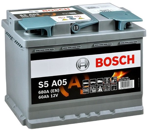 Описание Автомобильный аккумулятор Bosch 60Ah-12v AGM (S5A05), R+, EN680 (6900277641) (0092S5A050)