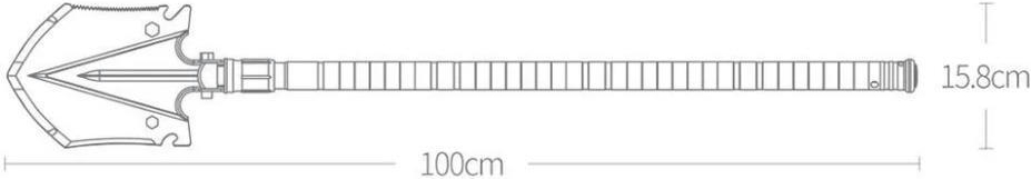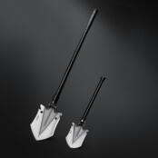 Рукоять изготовлена из авиационного алюминия 6061-T6 и выдерживает нагрузку до 1,8 тонны. Анодированное покрытие и рельефная поверхность гарантируют надежный хват даже в перчатках или во влажных условиях. Длина инструмента достигает 76 см, что позволяет работать без сильного наклона и лишнего напряжения. Лопата удобна в переноске благодаря модульной конструкции. В комплекте есть чехол для полотна, паракорд и нейлоновая сумка для ношения через плечо.