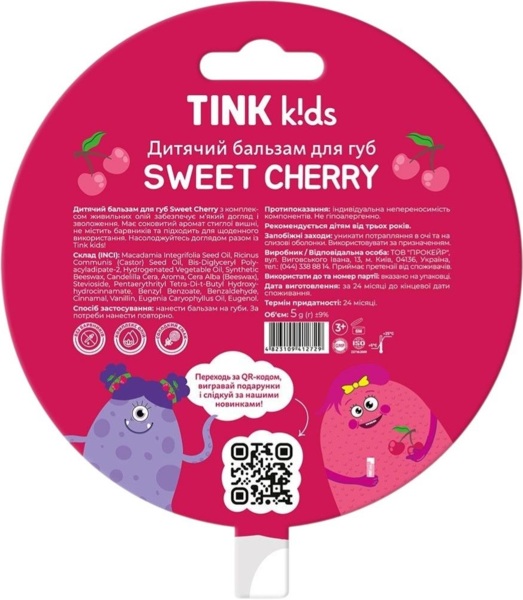 - Бальзам для губ детский Tink kids Sweet Сherry 5 г
