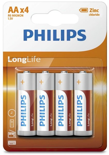Батарейка Philips LongLife Zinc Carbon AA BLI 4 (R6L4B/10)