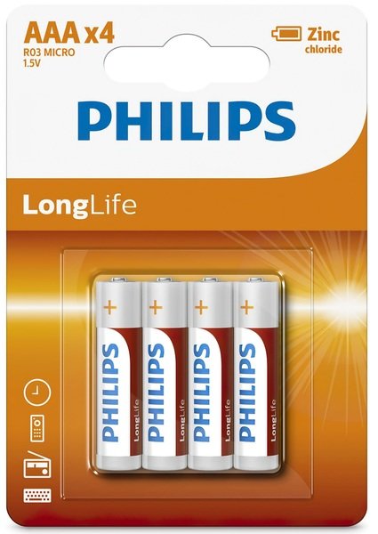 Батарейка Philips LongLife Zinc Carbon AAA BLI 4 (R03L4B/10)