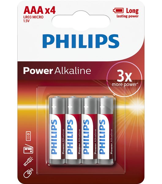 Батарейка Philips Power Alkaline AAA BLI 4 (LR03P4B/10)