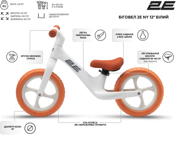 Беговел 2E NY 12" белый (ZCY-NY12-WHITE)