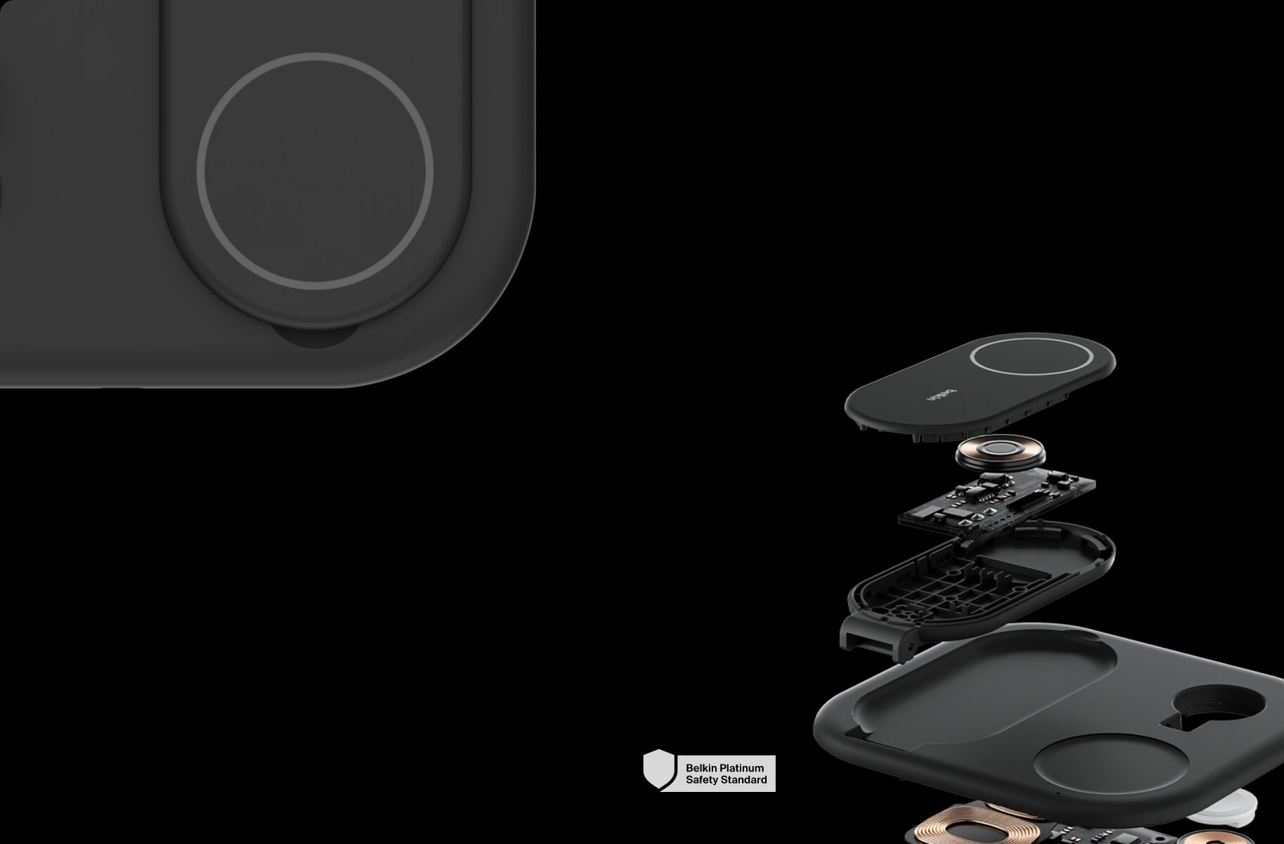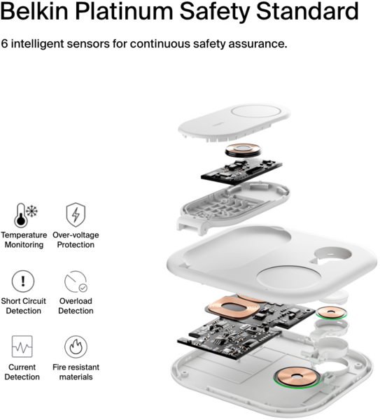 Наслаждайтесь беспроводным зарядным устройством 3 в 1, которое соответствует нашему стандарту безопасности Premium, прошедшему тщательные испытания. Кроме того, ваш телефон будет получать безопасную зарядку, даже если на него надет чехол, совместимый с MagSafe (до 3 мм).