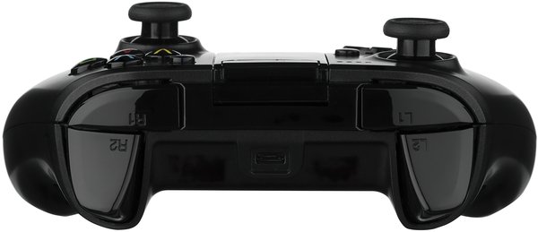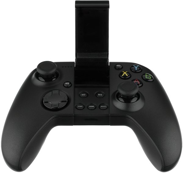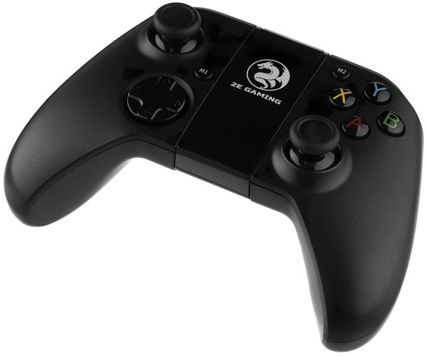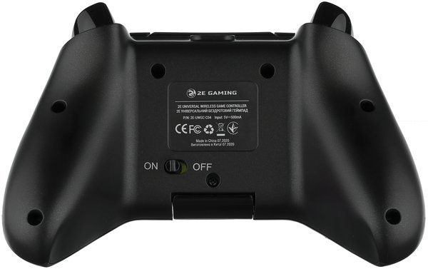 Геймпад 2E C04 - представлен глянцевой черной вставкой-крышкой держателем с логотипом и наличием значительного количества функциональных клавиш.