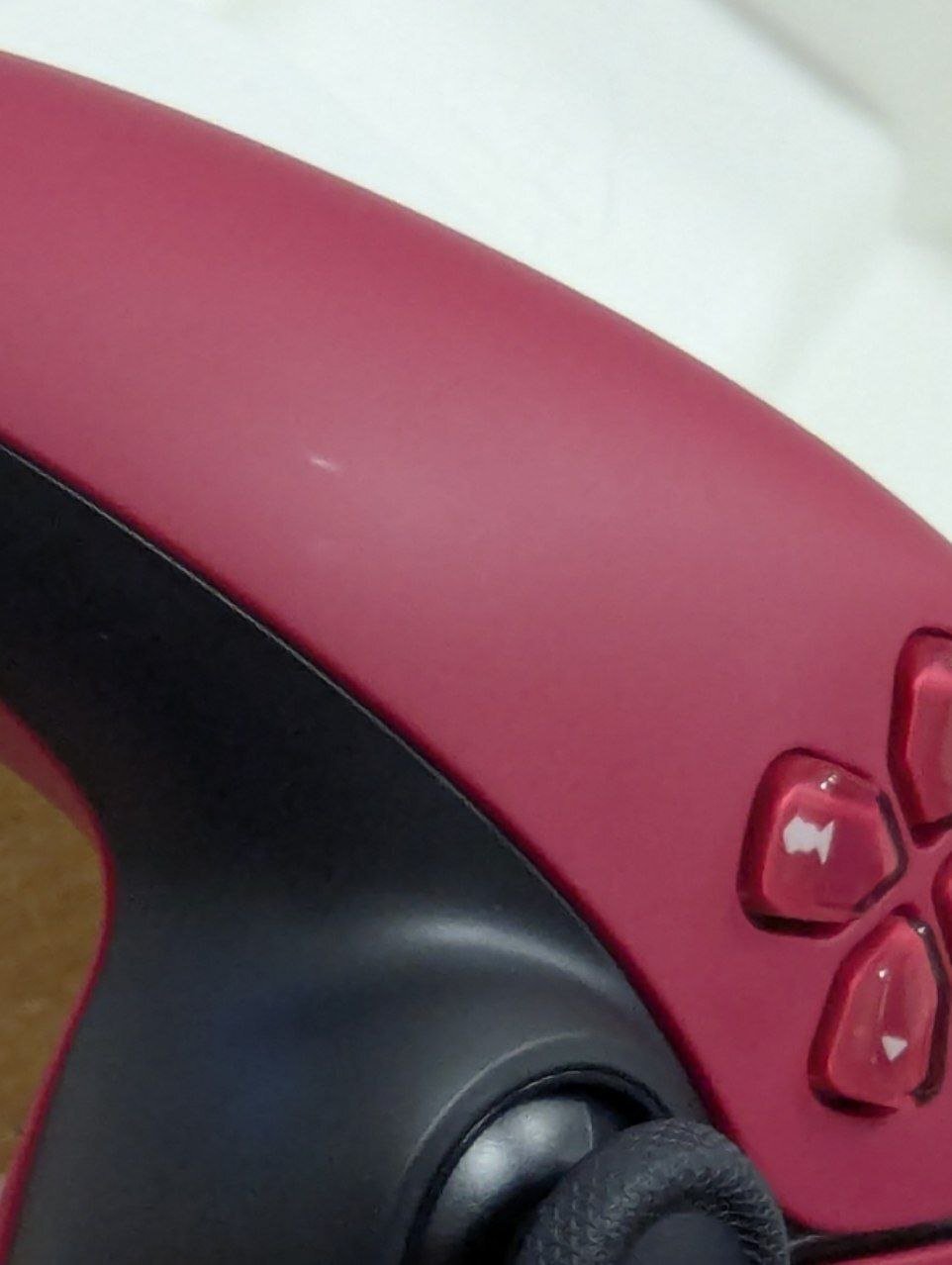 Крутий колір, вживу виглядає просто бомбезно, в залежності від того, як падає світло, колір видається то малиновим, то насичено червоним. Але якість зборки не дуже. Якщо конкретно, то є помітний люфт панелі тачпада (та, що по центру), просто проводячи по ній пальцем, відчувається, що вона сильно хитається, а при натисканні звучит характерний "хруст". Нічого подібного в DualSense, який йшов разом з консоллю, немає, тачпад там сидить майже "намертво", а при натисканні лунає глухий звук без будь-яких потріскувань. На функціонал це не впливає, всі кнопки працюють, як і повинні, але чисто естетично така якість розчаровує. Відео з демонстрацією "дефекта" у порівнянні з "комплектним" DualSense додаю.
