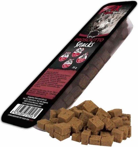 - Беззерновые лакомства для собак Alpha Spirit Snacks Prosciutto с прошуто, кубики 35г.