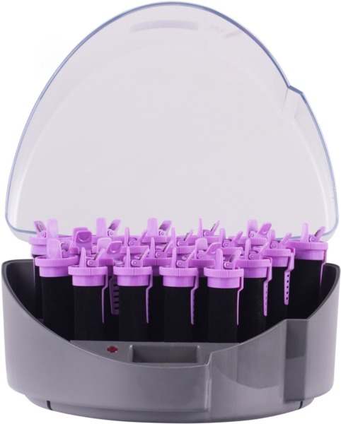 Порадовала себя бигудями KF40E e51 Фаст, которые находятся в практичном контейнере. Бегуди имеют привлекательный дизайн, их цветовая окраска выполнена в черно - фиолетовой гамме. Они произведены с высококачественого материала. Электробигуди имеют большую мощность, благодаря этому бегуди нагреваются за пять - восемь минут. Кудри хорошо накручиваются и выглядят упруго. В комплект входит контейнер, бигуди, зажимы, шпильки. При использовании бигудей волосы не путаются.
