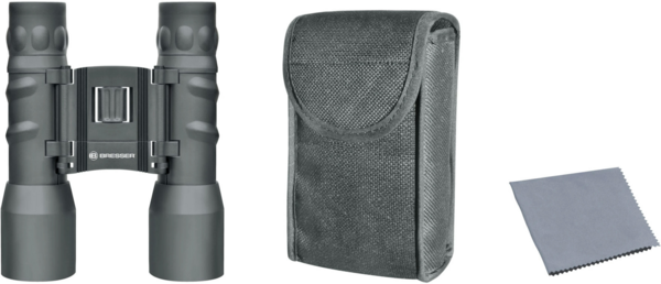 Оптика сделана из стекла BK-7, линзы и призмы просветлены. Оптическая конструкция собрана по roof-схеме. Резкость настраивается с помощью центрального барабана фокусировки. Бинокль имеет небольшую дистанцию минимальной фокусировки, поэтому подходит для изучения не только дальних, но и близких объектов. Благодаря примененной компактной призменной конструкции Roof, модель бинокля Bresser 12x32 подойдет для поклонников путешествий без лишнего веса. Его малый вес и компактность делает его удобным в длительных походах и поездках.