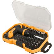 | Комплектация (возможны изменения в разных поставках) | Бита - 32 шт., Держатель насадок, Кейс, Рукоятка, Торцевая головка - 6 шт., Удлинитель |