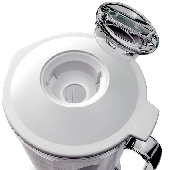 Стеклянный кувшин легко моется,устойчив к пищевым запахам, обесцвечиванию и пятнам, а также надежен и долговечен в использовании. Твердые и жидкие ингредиенты можно добавлять даже во время измельчения через внутреннюю крышку.
