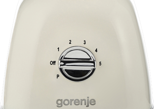 Скорость ножа с четырьмя лезвиями регулируется ручкой в стиле ретро. Нож имеет 5 скоростей и эффективный импульсный режим.