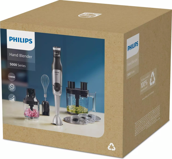 Добрий день! У комплекті з блендером Philips Series 5000 HR2685/00 Ви знайдете: вінчик для збивання, мірний стакан, міні-подрібнювач, насадки - 3 шт, насадку-комбайн, документацію та сам пристрій.