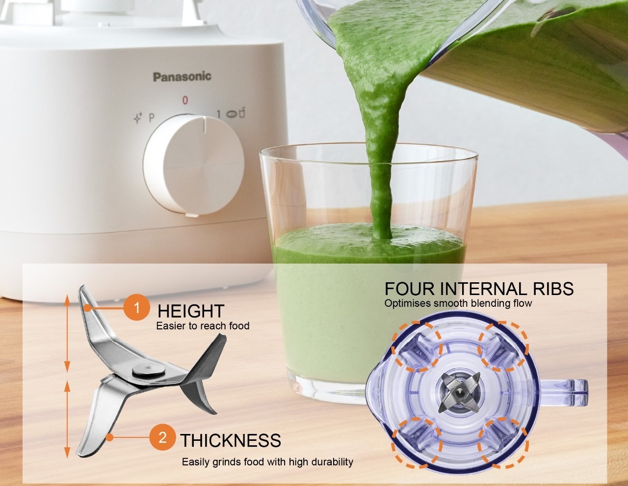 Лезвия из нержавеющей стали обеспечивают равномерное перемешивание, а четыре внутренние ребра поддерживают консистенцию потока, равномерно измельчая ингредиенты.