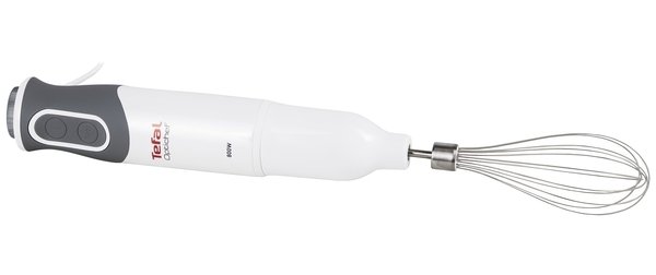 Блендер от Tefal — компактный механизм в пластиковом корпусе, работающий от сети. Высота устройства — 41 см. Цвет корпуса — белый. Ножка и насадки выполнены из нержавеющей стали, которая даже со временем остается достаточно острой для решения любых задач.