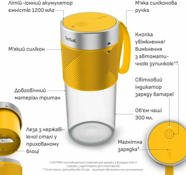 До 11 циклов смешивания на одном заряде благодаря качественному аккумулятору 1200 мАч и зарядному кабелю с магнитным коннектором.