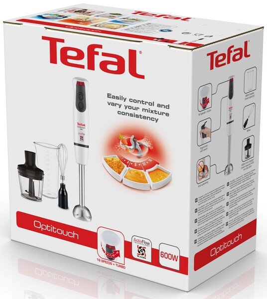 Приготовление многих блюд на домашней кухне упрощается в разы, если есть помощник, как ручной блендер. Его цена значительно ниже, чем у комбайна, и вместе с тем блендер полностью справляется с большинством его функций. Комплектация Tefal HB833138 включает в себя необходимые аксессуары для измельчения, взбивания и перемешивания различных продуктов. Характеристики и особенности: В каких случаях полезен погружной блендер? Этот вариант подойдет для приготовления относительно небольших объемов блюд. Устройство – хорошее подспорье, если вы хотите сделать пюре, детское питание, коктейль, фарш, паштет или мусс – список рецептов очень разнообразен. Мощности прибора и диапазона скоростей достаточно, чтобы работать с продуктами разной степени жесткости. Для переработки особо жестких и очень мягких продуктов рекомендуется выбирать импульсный или турборежим. Tefal HB833138 поставляется в наборе с измельчителем и венчиком, поэтому его можно использовать как измельчитель, и как миксер. Взбить белки до безе, измельчить ягоды, овощи, орехи и зелень, смешать ингредиенты для приготовления теста – все это способен сделать блендер. Все контактные элементы устройства (ножи и прочие насадки) выполнены из нержавеющей стали.