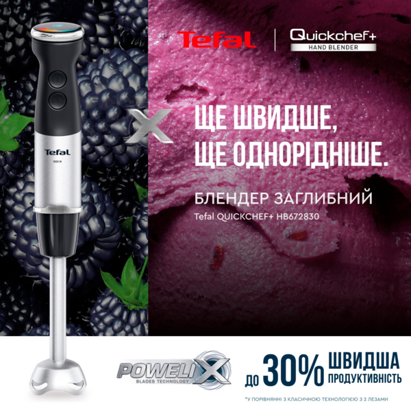 Ручной блендер Quickchef+ от Tefal обеспечивает исключительную производительность. Эксклюзивная технология Powelix обеспечивает впечатляющую гладкость, и может ускорять работу на 30% для получения кремообразных и ровных текстур - даже из самых твердых ингредиентов!